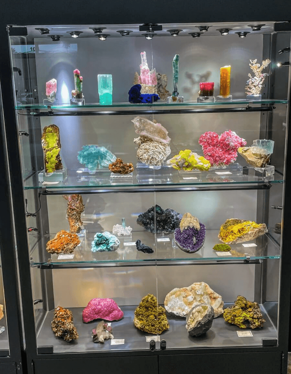For nearly a week, we walked miles through tents and expo halls, connected with miners who'd traveled from Madagascar and Brazil, and held stones still carrying the weight of the earth they came from. We found pieces that stopped us mid-step—a rutilated quartz with golden threads like captured sunlight, a cluster of tourmalines in shades we didn't know existed, specimens that will soon find their way into the gallery.